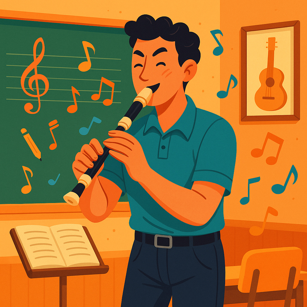 Alunos aprendem tocando: teoria musical aplicada diretamente na flauta.